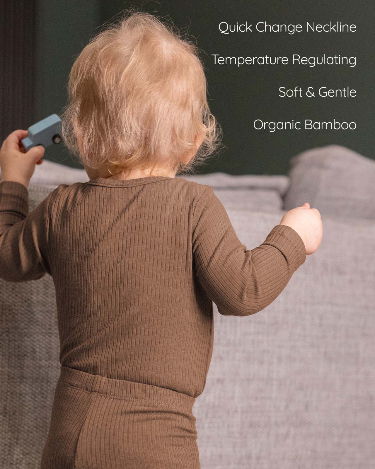 Jeder Babybody ist so gefertigt, dass er sanft zur zarten Haut ist und gleichzeitig robust genug für regelmäßiges Waschen, wodurch Weichheit und Praktikabilität in Einklang gebracht werden.