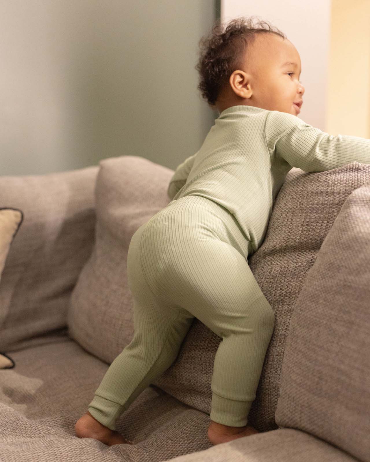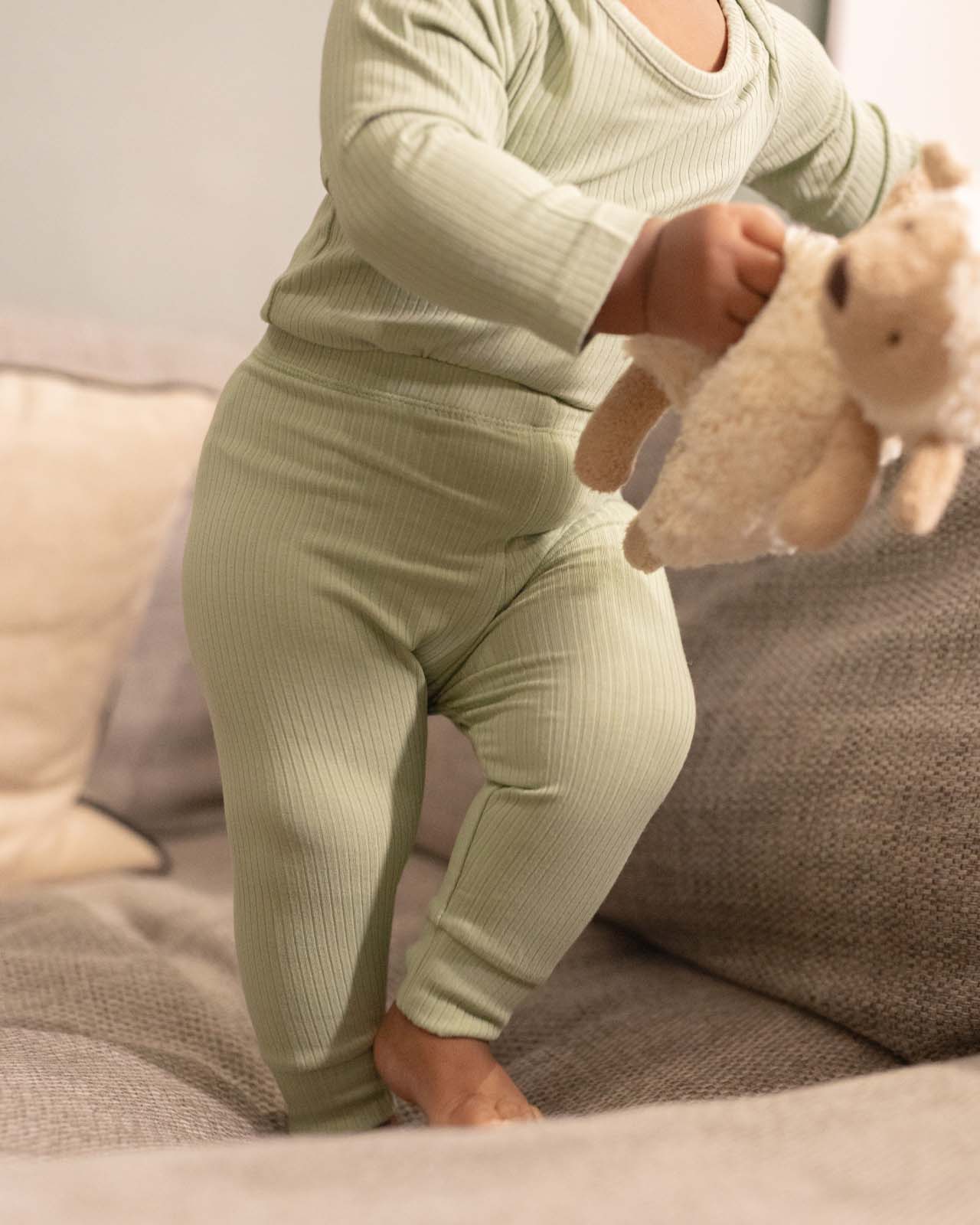 Bambus ist von Natur aus atmungsaktiv und temperaturregulierend und sorgt so dafür, dass die kleinen Beine in wärmeren Momenten kühl und in kälteren Zeiten warm bleiben, während er gleichzeitig besonders sanft zur empfindlichen Haut ist.